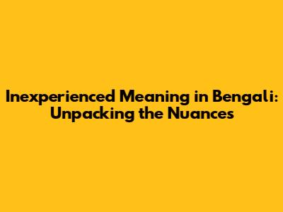 Inexperienced Meaning In Bengali: A Detailed Explanation