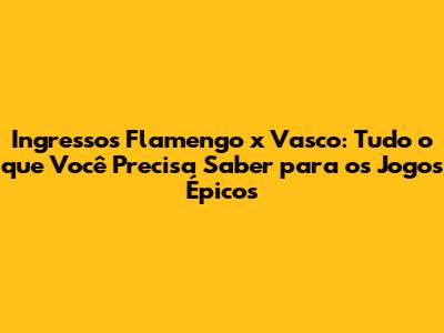 Ingressos Flamengo X Vasco: Guia Completo Para Os Clássicos