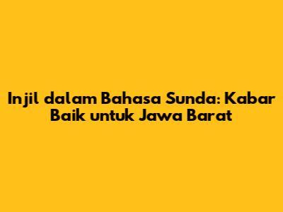 Injil Dalam Bahasa Sunda: Kabar Baik Untuk Jawa Barat