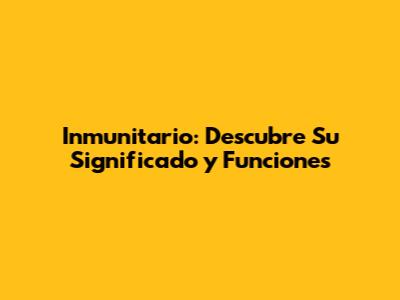 Inmunitario: Descubre Su Significado Y Funciones