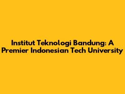 Institut Teknologi Bandung: A Premier Indonesian Tech University