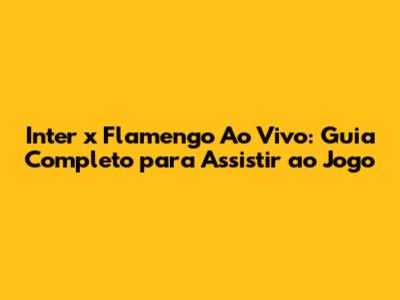 Onde Assistir Inter x Flamengo Ao Vivo?
