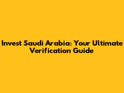Invest Saudi Arabia: Your Verification Guide