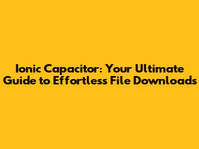 Ionic Capacitor: Your Guide To Effortless File Downloads