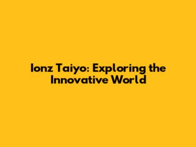 Ionz Taiyo: Exploring The Innovative World