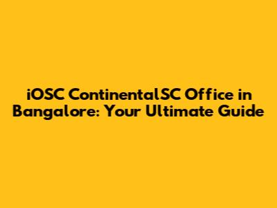 IOSC ContinentalSC Office In Bangalore: Your Ultimate Guide