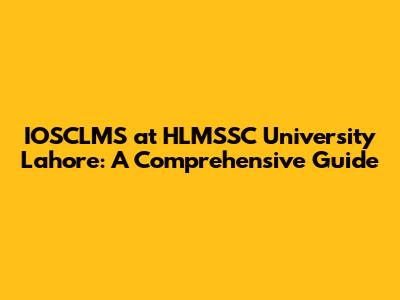 IOSCLMS At HLMSSC University Lahore: A Comprehensive Guide