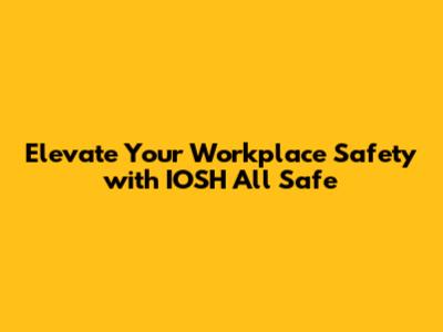 Elevate Your Workplace Safety with IOSH All Safe