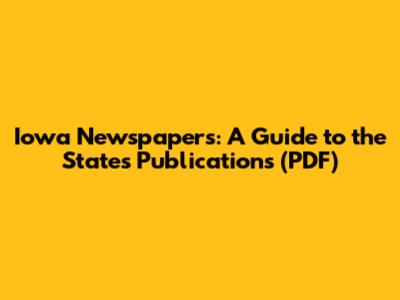 Iowa Newspapers: A Guide To The State's Publications (PDF)