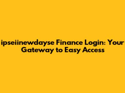 Ipseiinewdayse Finance Login: Your Gateway To Easy Access