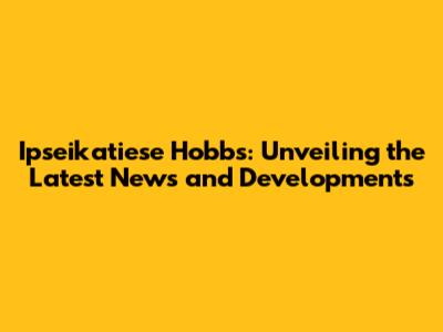 Ipseikatiese Hobbs: Breaking News And Latest Updates