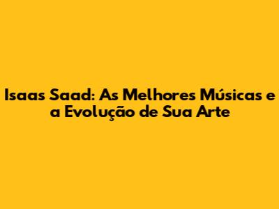 Isaas Saad: Melhores Músicas E Sua Jornada Musical