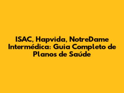 ISAC, Hapvida, NotreDame Intermédica: Guia Completo De Planos De Saúde