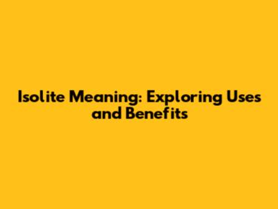 Isolite Meaning: Exploring Uses And Benefits
