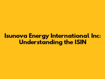 Isunova Energy International Inc: Understanding The ISIN