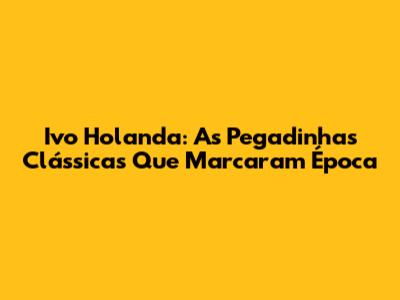 Ivo Holanda: As Pegadinhas Clássicas Que Marcaram Época