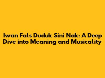 Hey guys! Let's dive deep into the world of Indonesian music and explore a classic: Iwan Fals' song, "Duduk Sini Nak." This tune isn't just a catchy melody; it's a window into the soul of a generation, packed with social commentary and raw emotion. We're gonna break down the song's meaning, its impact, and why it still resonates with so many people today. Get comfy, grab your favorite drink, and let's get started!