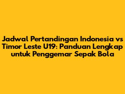 Jadwal Indonesia vs Timor Leste U19, menjadi perbincangan hangat di kalangan pecinta sepak bola Tanah Air. Pertandingan antara kedua timnas kelompok umur ini selalu menarik perhatian, menawarkan tontonan yang penuh semangat dan potensi pemain muda yang menjanjikan. Artikel ini akan menyajikan panduan lengkap mengenai jadwal pertandingan, termasuk tanggal, waktu, lokasi, dan informasi penting lainnya yang perlu diketahui oleh para penggemar.
