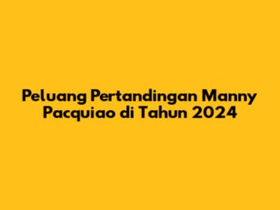 Peluang Pertandingan Manny Pacquiao di Tahun 2024