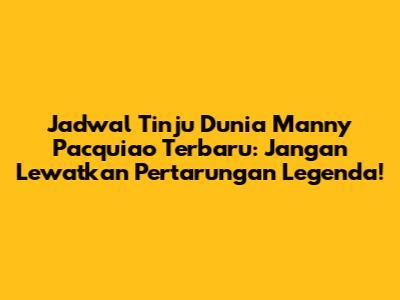 Hai para pecinta tinju dunia, ada kabar seru nih buat kalian! Buat kalian yang ngefans berat sama Manny Pacquiao, si legendaris yang masih aja bikin gebrakan di ring, wajib banget pantengin artikel ini. Kita bakal kupas tuntas soal jadwal tinju dunia Manny Pacquiao yang paling baru, biar kalian nggak ketinggalan momen-momen epik dari The Pacman. Yup, meskipun usianya nggak muda lagi, semangat juang Pacquiao di atas ring itu nggak pernah padam, guys! Dia terus membuktikan kalau pengalaman itu mahal harganya, dan dia masih punya banyak trik di lengan bajunya.