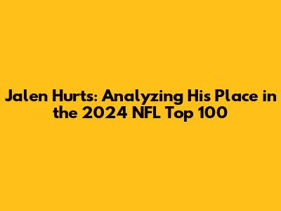 Hey guys, let's dive into something super interesting – figuring out where Jalen Hurts might land in the NFL Top 100 for 2024. As an avid football enthusiast, I'm always hyped to discuss rankings, especially when they involve a dynamic player like Hurts. This isn't just about numbers; it's about the grit, the plays, and the leadership that Hurts brings to the game. We're going to break down his performance, his impact on the Philadelphia Eagles, and why he's a player to watch closely. Get ready for a deep dive into what makes Hurts a top contender, looking at everything from his passing game to his incredible ability to run the ball.