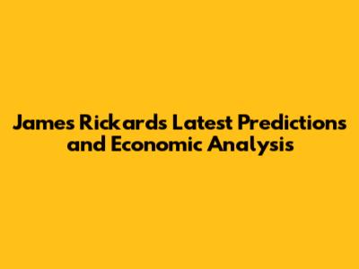 James Rickards, a renowned economist and investment advisor, is widely recognized for his insightful analysis of global financial markets and geopolitical events. His latest predictions and economic analysis are keenly followed by investors, economists, and policymakers alike, seeking to understand the complex interplay of factors shaping the world economy. In this article, we will delve into Rickards' recent commentary, exploring his perspectives on key economic trends, potential risks, and investment strategies for navigating the current landscape.