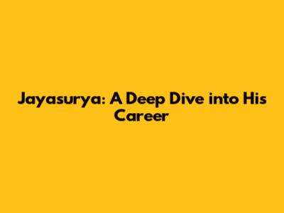 Jayasurya: A Deep Dive Into His Career