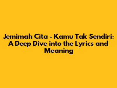 Hey guys! Today, we're diving deep into Jemimah Cita's soulful song, "Kamu Tak Sendiri." This song isn't just a catchy tune; it's a powerful message of hope and solidarity. Let's break down the lyrics and explore the emotional landscape that Jemimah paints with her words. Prepare to be moved, because this song is a real tearjerker in the best way possible!