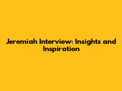 Jeremiah Interview: Insights And Inspiration