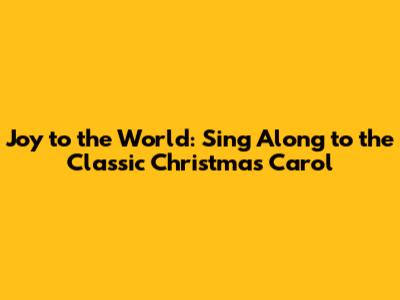 Joy To The World: Classic Christmas Carol Lyrics