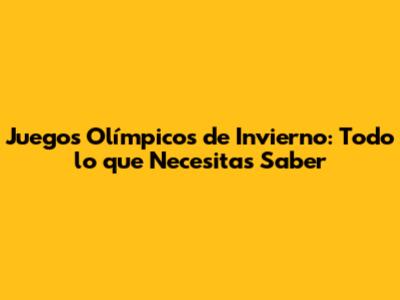 Juegos Olímpicos De Invierno: Todo Lo Que Necesitas Saber