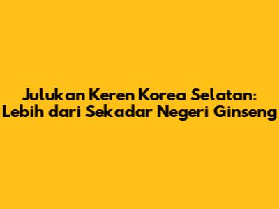 Julukan Keren Korea Selatan: Lebih Dari Sekadar 'Negeri Ginseng'