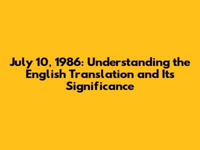 July 10, 1986: The English Translation And Significance