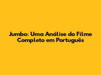 Jumbo: Uma Análise Do Filme Completo Em Português