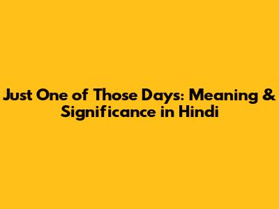 Just One Of Those Days: Meaning & Significance In Hindi