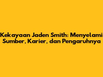 Jaden Smith, nama yang sudah tidak asing lagi di dunia hiburan. Tapi, pernahkah kalian penasaran berapa kekayaan Jaden Smith sebenarnya? Sebagai seorang aktor, rapper, pengusaha, dan ikon gaya, Jaden telah membangun kerajaan bisnis dan karir yang mengesankan sejak usia muda. Mari kita telusuri lebih dalam sumber kekayaan, perjalanan karir, dan bagaimana ia memberikan pengaruh yang besar di industri hiburan dan sekitarnya.