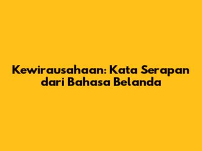 Kewirausahaan: Kata Serapan Dari Bahasa Belanda