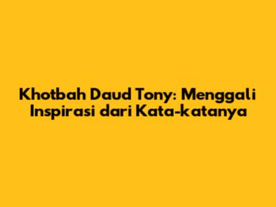 Guys, siapa yang gak kenal dengan Khotbah Daud Tony? Seorang tokoh yang khotbahnya selalu dinanti-nanti, penuh makna, dan pastinya menginspirasi banyak orang. Artikel ini, kita bakal kupas tuntas tentang Khotbah Daud Tony, mulai dari bagaimana ia menyampaikan pesan-pesan yang mendalam, sampai ke inspirasi apa saja yang bisa kita petik dari setiap kata-katanya. Kita akan menyelami beberapa tema utama yang sering diangkat dalam khotbahnya, serta bagaimana kita bisa mengaplikasikan nilai-nilai tersebut dalam kehidupan sehari-hari. So, siap-siap buat merenung dan dapat pencerahan, ya!
