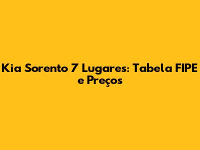 Kia Sorento 7 Lugares: Tabela FIPE E Preços