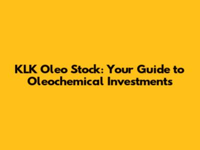 KLK Oleo Stock: Your Guide To Oleochemical Investments