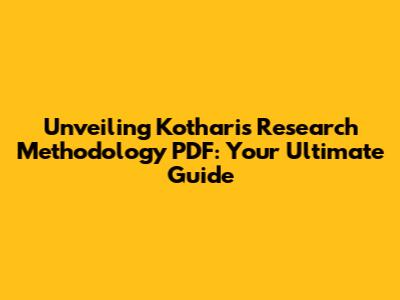 Kothari Research Methodology PDF Guide