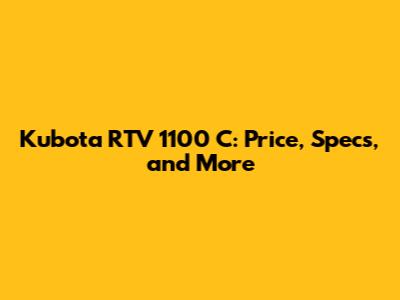 Kubota RTV 1100 C: Price, Specs, And More