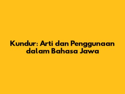 Kundur: Arti Dan Penggunaan Dalam Bahasa Jawa
