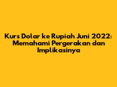 Kurs dolar ke rupiah pada Juni 2022 dipengaruhi oleh berbagai faktor, termasuk kebijakan moneter, inflasi, neraca perdagangan, sentimen pasar, dan kondisi global. Pergerakan kurs ini memiliki dampak yang luas terhadap ekonomi dan kehidupan masyarakat. Memahami faktor-faktor yang mempengaruhi kurs dan dampaknya sangat penting untuk pengambilan keputusan yang tepat. Dengan mengelola risiko valuta asing dengan bijak, individu dan bisnis dapat memitigasi dampak negatif dari fluktuasi nilai tukar. Teruslah mengikuti perkembangan pasar dan mengambil langkah-langkah yang diperlukan untuk melindungi keuangan Anda.