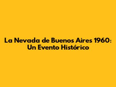 La Nevada De Buenos Aires 1960: Un Evento Histórico