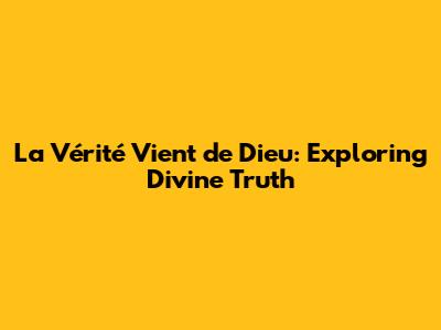 La Vérité Vient De Dieu: Exploring Divine Truth