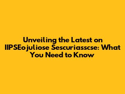 Latest IIPSEojuliose Sescuriasscse News & Updates