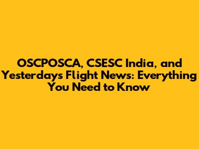Latest On OSCPOSCA, CSESC India & Yesterday's Flight Updates