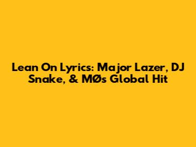 Lean On Lyrics: Major Lazer, DJ Snake, & MØ's Global Hit