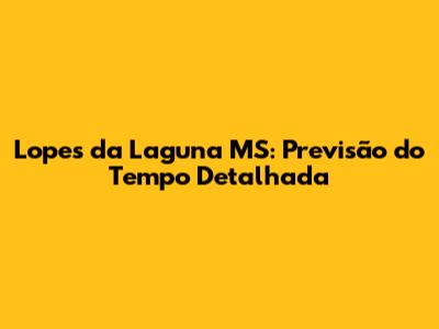 Previsão do Tempo Detalhada para Lopes da Laguna, MS